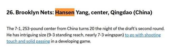 重磅媒体也看好!美联社模拟选秀,杨瀚森被篮网首轮第26顺位选中